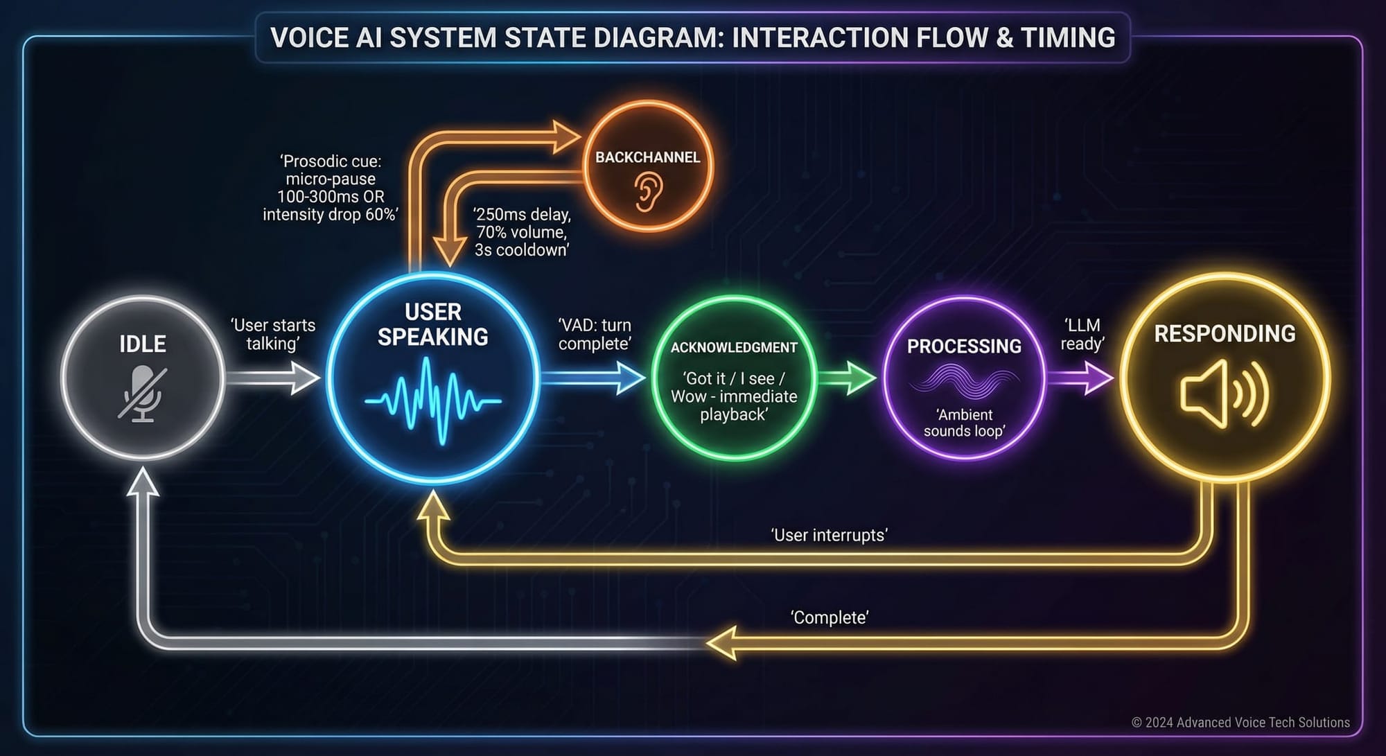 The irony is that achieving this requires implementing things most people never consciously notice. No one thinks about backchannels in their daily conversations. No one analyzes the prosodic cues they respond to. These patterns are so deeply automatic that they’re invisible.